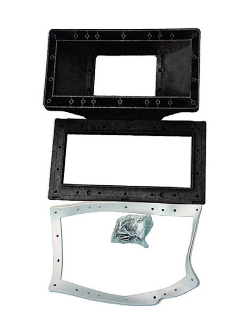 zestawem do montażu na powierzchni ust. Zestaw składa się z przystawki, gumowej uszczelki, kołnierza i śrub.